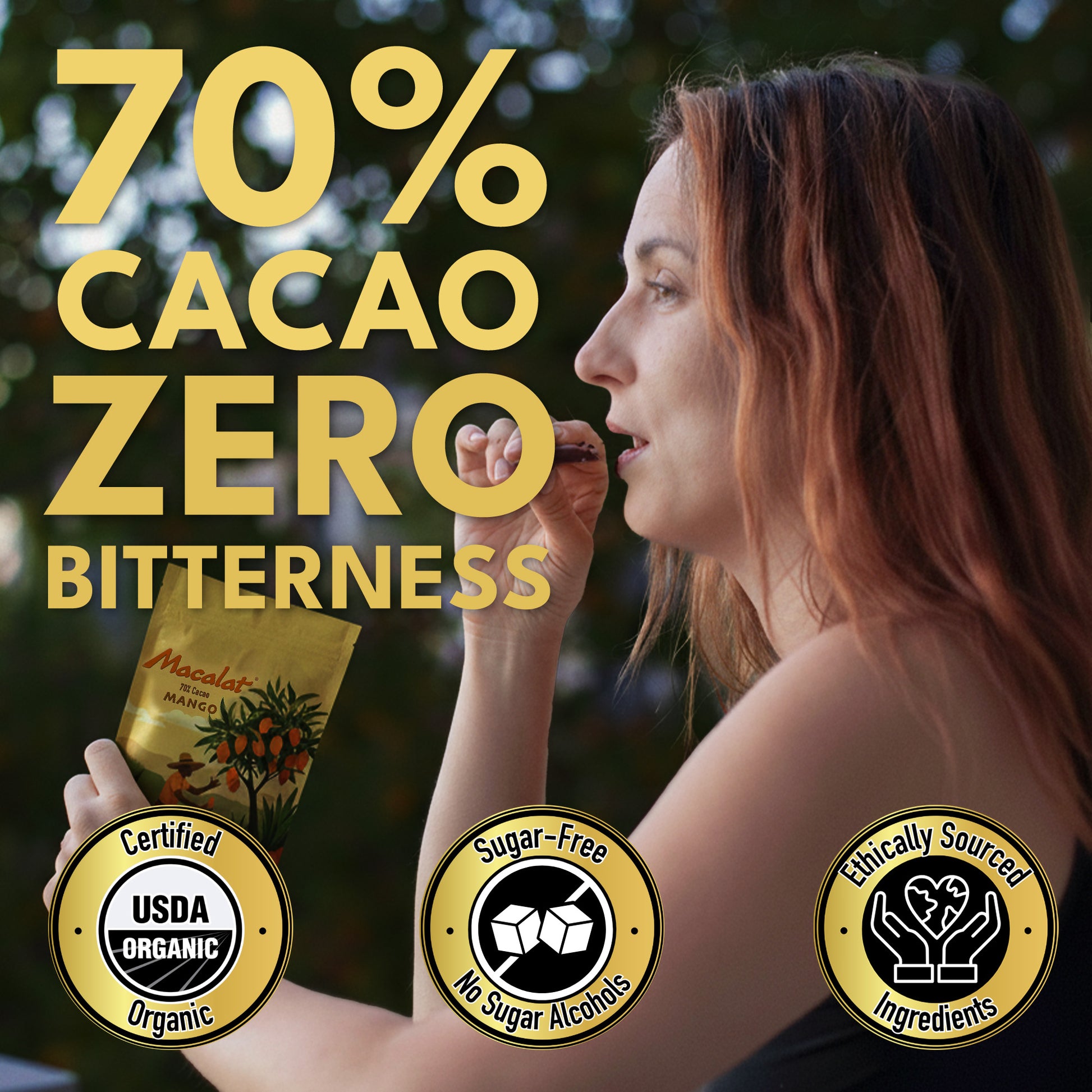 Discover the bold sophistication of healthy dark chocolate with mango – a decadent yet nourishing treat that is plant based, allergen free, and non-GMO.