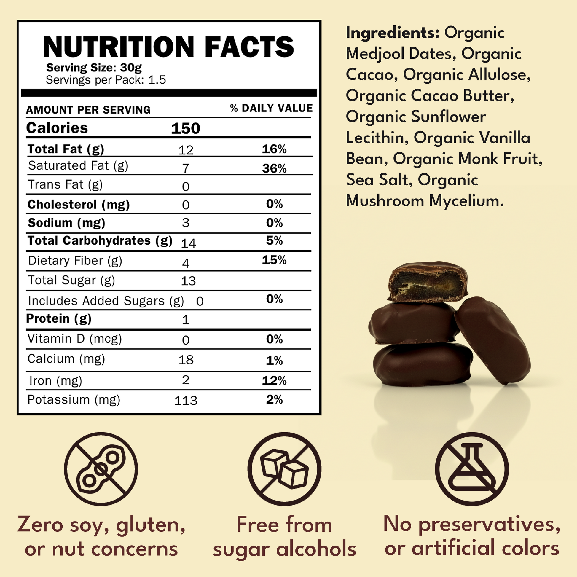 All the wellness benefits of The Essence bar plus organic Medjool Dates, with no added sugar and no sulfites.